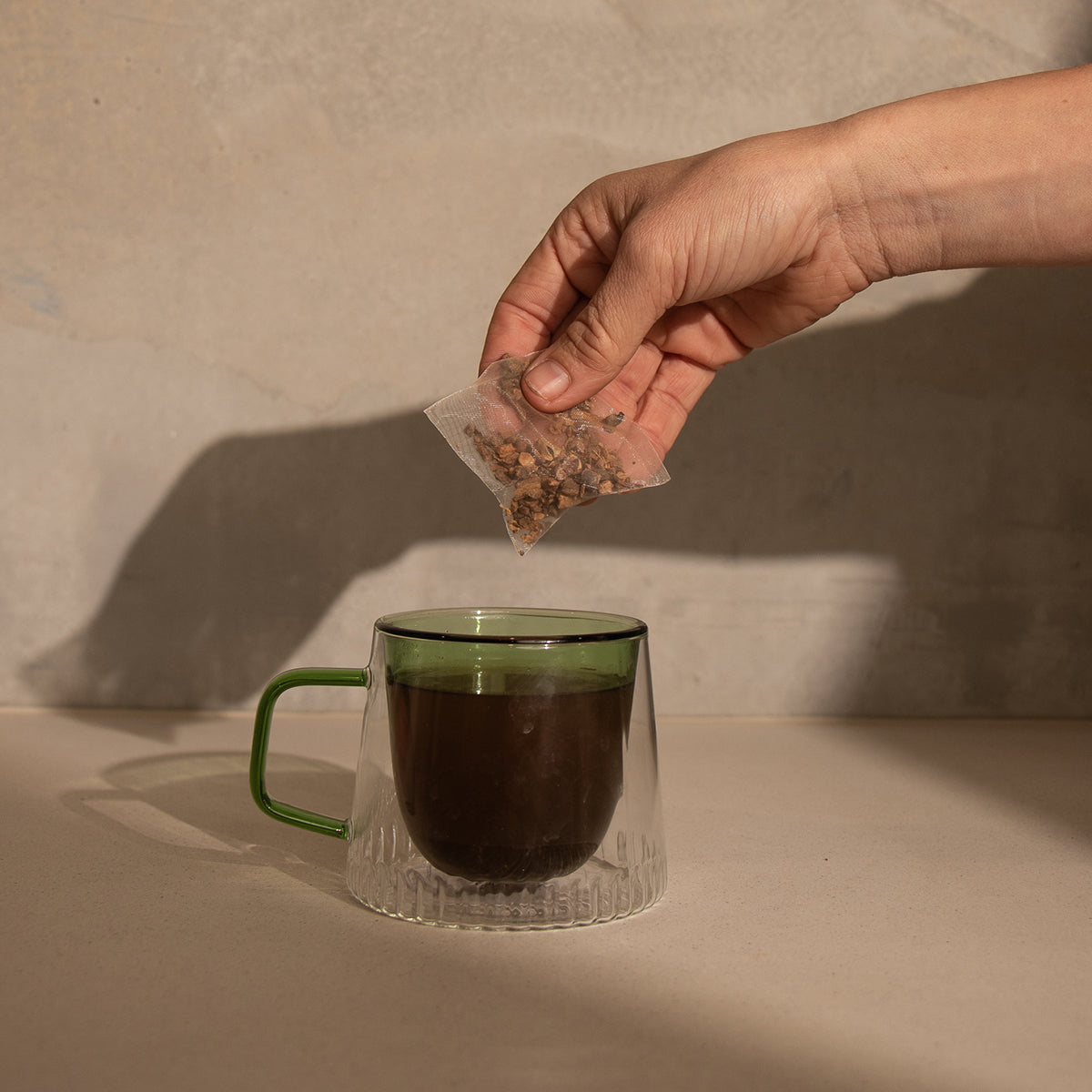 For a latte-style brew: Simmer 1–2 teaspoons in your milk of choice (almond is our go-to) for 6–8 minutes, then strain.
